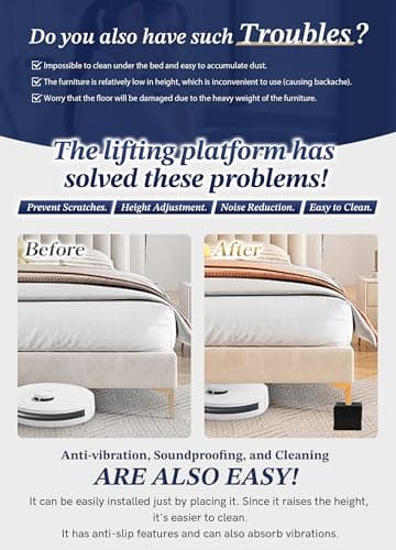 The other meaningful split is height and use case. Low-clearance shoppers can stay on low lift bed riser, while storage-driven shoppers often need tall lift bed riser or best bed riser for storage and cleaning access. Bed-frame shoppers also separate cleanly from sofa and table buyers, which is why bed frame and dorm bed sits beside sofa and couch lift and table, desk, and chair lift instead of being buried inside one mixed list.