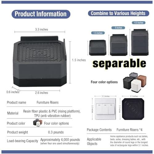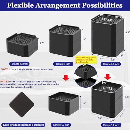 EclatBain Bed Risers Furniture Risers Heavy-Duty Rectangular Adjustable Block Lift to 3 inches and 4.3 inches Desk, Sofa, Chair Legs, Refrigerator, Washing Machine Support up to 4000 pounds