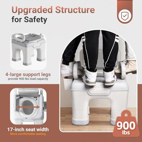 AKIMRABY Bedside Commode, Upgraded Safety Commode Toilet for Elderly Disabled, Potty Chair for Adult with Enlarged Arms, Height Adjustable, 900lbs Heavy Duty Bedside Commodes for Seniors