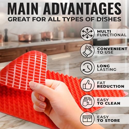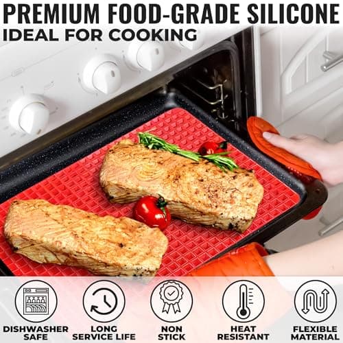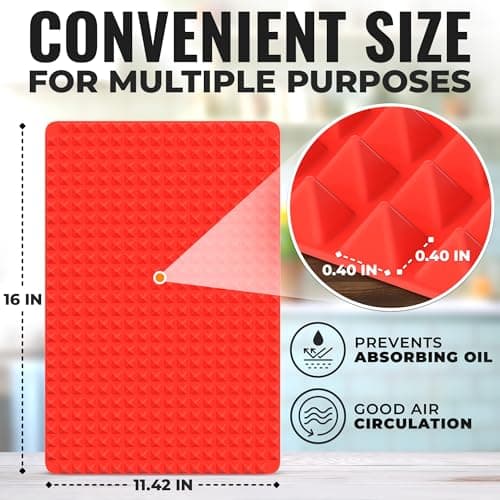 Red Silicone Baking Mat - 16x11.42" Non Stick Baking Mat With Fat Filtering Red Pyramid Design, Suitable for Oven & Microwave - Flexible & Easy-to-Clean Silicone Cooking Mats for Roasting, BBQ, Bacon