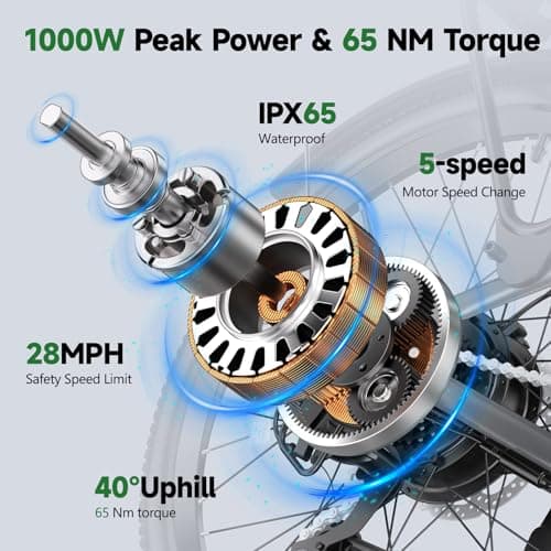 Misodo Electric Bike for Adults, 1500W Peak Mountain Ebike with 28 MPH, 65 Miles Range, 7 Speeds, 48V 10Ah Removable Battery 26" Ebike for Commute