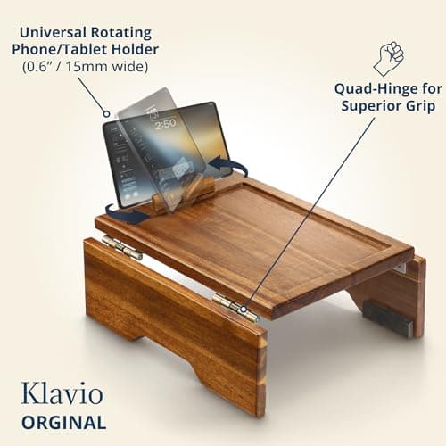 Couch Arm Table Tray with Phone & Tablet Holder โ Golden Brown | Premium Clip-On Sofa Arm Tray for Snacks, Drinks, Remotes, and More โ Perfect Sofa Side Table for Living Room Comfort