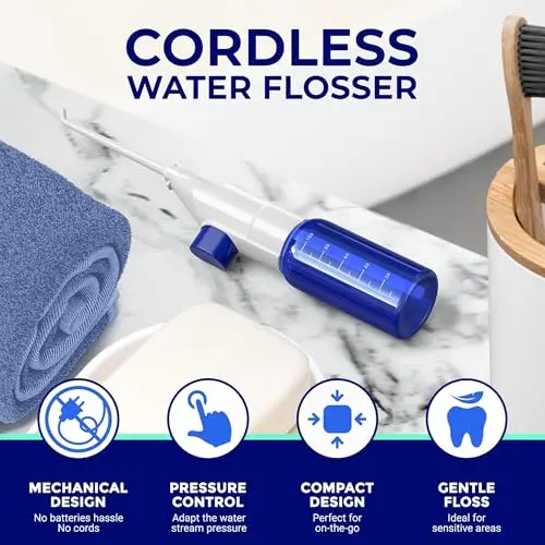 ![Water Flosser [ Mini Cordless Portable ] Oral Irrigator Water Teeth Cleaner Pick, Telescopic Water Tank, 3 Modes & IPX7 Waterproof, Home & Travel Water Floss for Teeth, Braces Bridges Care (White)](/essentials/_next/image?url=https%3A%2F%2Fm.media-amazon.com%2Fimages%2FI%2F41560HiGA4L._SL500_.jpg&w=3840&q=75)