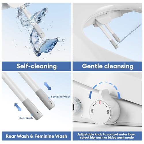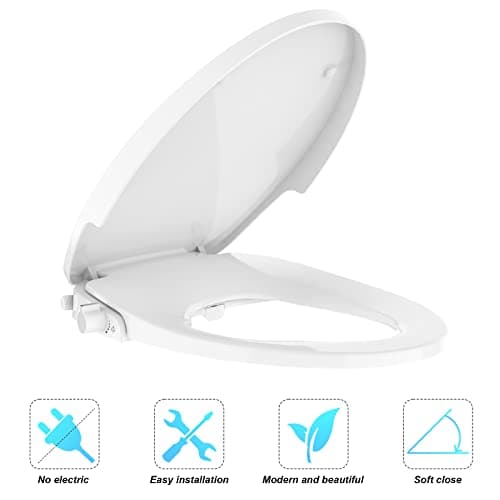 Bidet Toilet Seat for Round Toilet, Non-Electric Dual Nozzle Bidet Attachment with Soft Close Lid, Feminine Hygiene Toilet Seat Cover for Women, Easy Install, White
