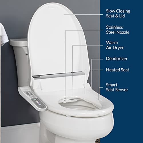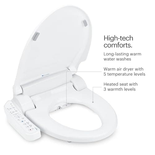Bio Bidet BB1000 Warm Water Bidet Seat, Air Dryer, Heated Seat with Slow Close Lid, Remote Control, Elongated