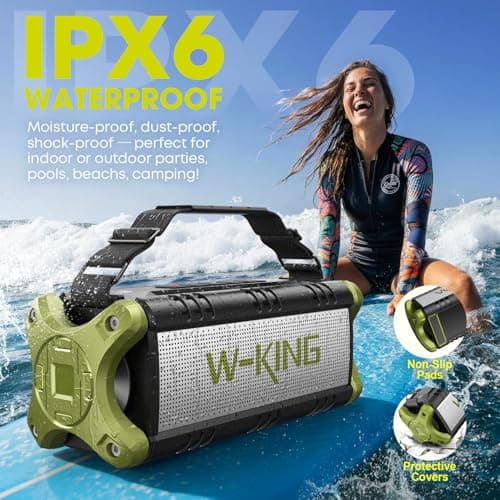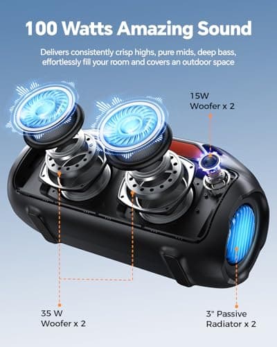 Boombox Bluetooth speakers are all about big sound in a portable package. You're looking at speakers with multiple drivers, serious bass radiators, and power outputs ranging from 30W to 100W or more. The W-KING D9-1 and D8 models dominate this space with their massive passive radiators and dual subwoofer setups—these aren't subtle speakers. If you want room-filling sound for parties or outdoor gatherings, budget options like the MIATONE or TENMIYA deliver surprising punch around the value tier, while premium picks like the JBL PartyBox 310 bring 240W of power with light shows included.
