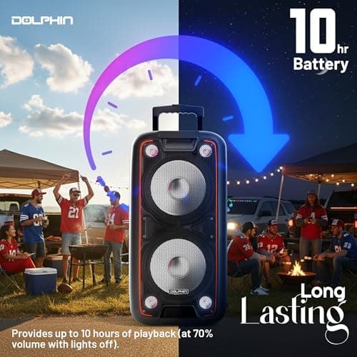 Battery life matters more here than with smaller speakers. Look for 15+ hours minimum—the Monster Rockin' Roller 270 claims up to 100 hours, which is wild. Weight is the tradeoff: these speakers range from a few pounds to 30+ pounds for the big boys. If you need true portability with decent sound, check out portable Bluetooth speakers instead. For outdoor use, IPX6 or IPX7 ratings are essential—the W-KING models and JBL options handle splashes well. Dual pairing lets you connect two speakers for stereo sound, a feature worth having if you're serious about audio quality.