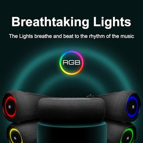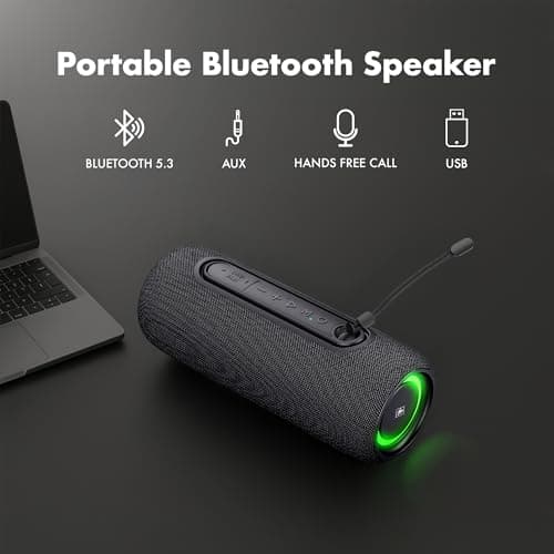 Bluetooth Speaker Wireless,IP67 Waterproof & Dustproof Portable Speaker with Lights,15W Loud Stereo Sound, 2500mAh Battery All Day Playtime, TWS Pairing, BT5.3, Home/Party/Outdoor/Beach (Black)