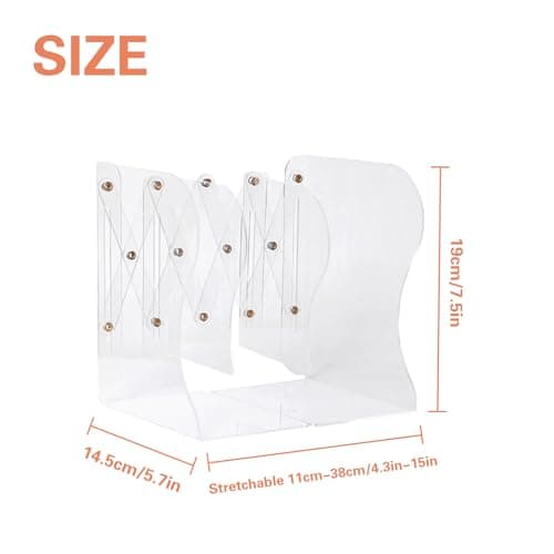 CY craft 4 Pieces Bookends,Clear Acrylic Bookends for Shelves,Heavy Duty Book Ends and Desktop Organizer,Book Stopper for Books/Movies/CDs,7.3x4.8x4.8 inch