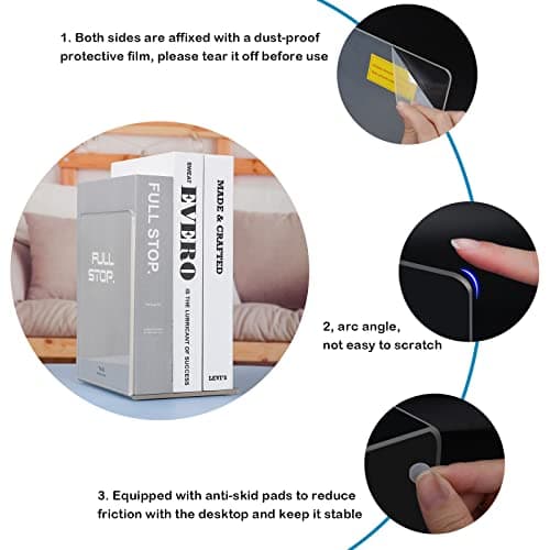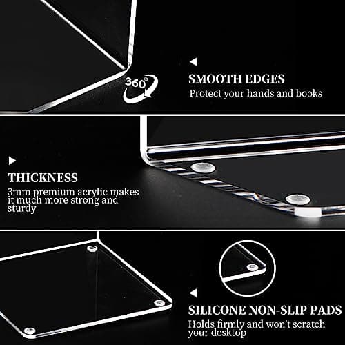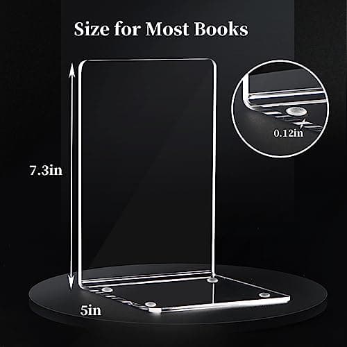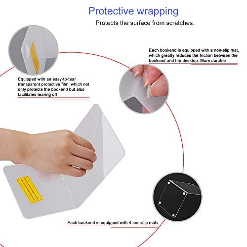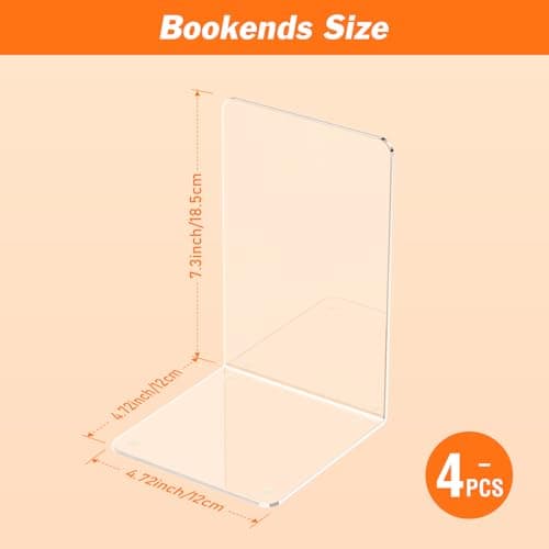 Acrylic Bookends 4 Pcs, Clear Book Ends for Shelves, Transparent Bookend Organizer, Book Holder Stand Decorative, Book Stoppers for Heavy Duty Books, CD, File, Video Games