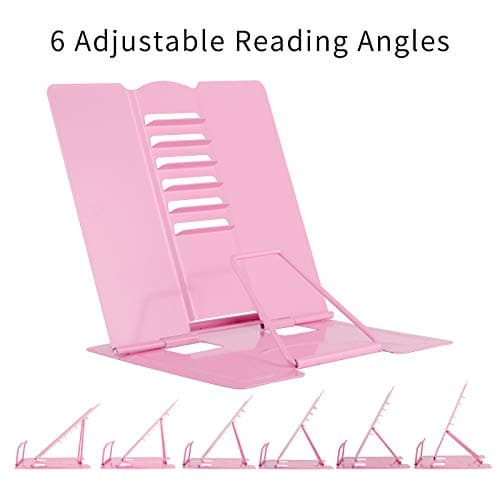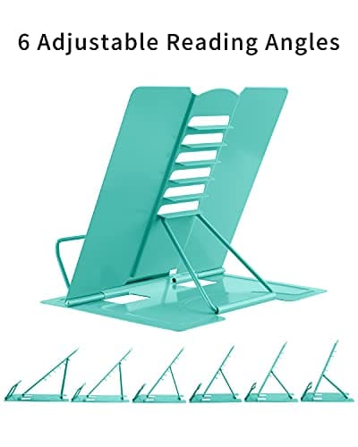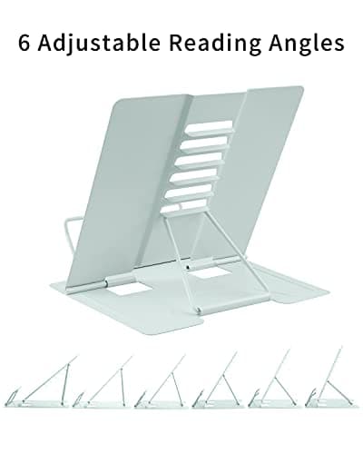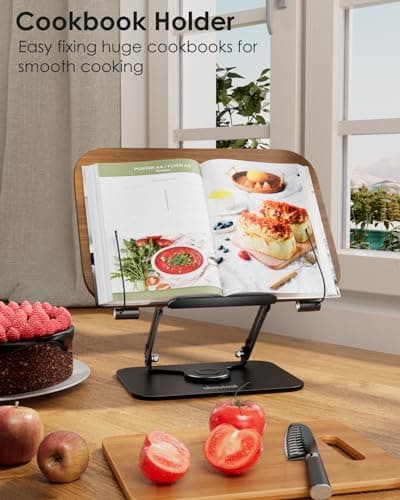 Book Stand for Reading, Aboutool Adjustable Book Holder with 360° Swivel Base & Page Clips, Foldable Cookbook Stand Textbook Stand for Music Scores, Recipe, Tablet, Laptop, Textbook