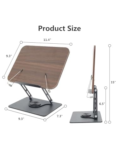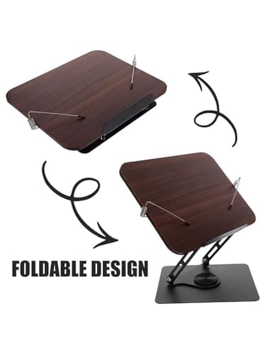 Abiglifty Book Stand for Reading,Adjustable Book Holder with 360° Rotating Base,Foldable Book Holder Stand for Cookbook,Textbook,Tablets, Laptops (Dark Wood)