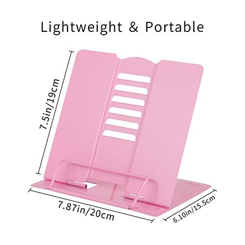 Viozon Book Stand for Reading,Book Holder, Height&Angle Adjustable, 360° Rotating Base, Foldable and Portable, Lightweight for Office, Kitchen, School Textbook, Recipe, Magazine,Kindle,Tablet DW
