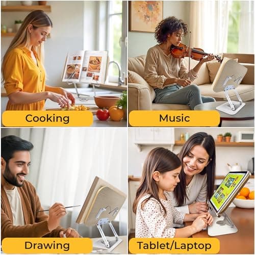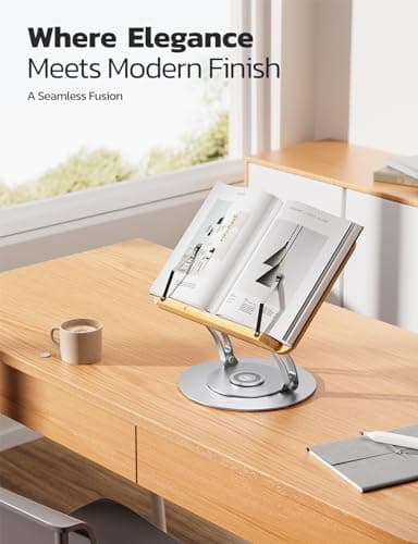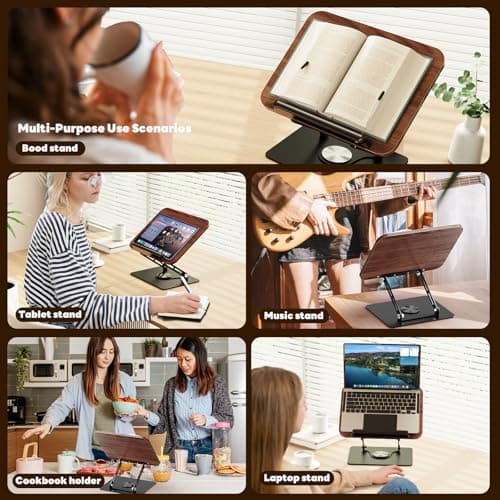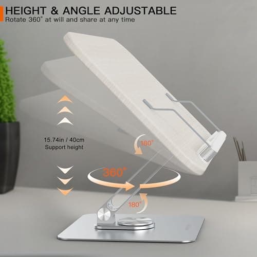 Book Stand for Reading, Multi-Angle & Height Book Holder with 360° Swivel Base, Lightweight Foldable Cookbook Stand for Kitchen, Office, Textbook, Recipe, Music Scores, Kindle, Tablet