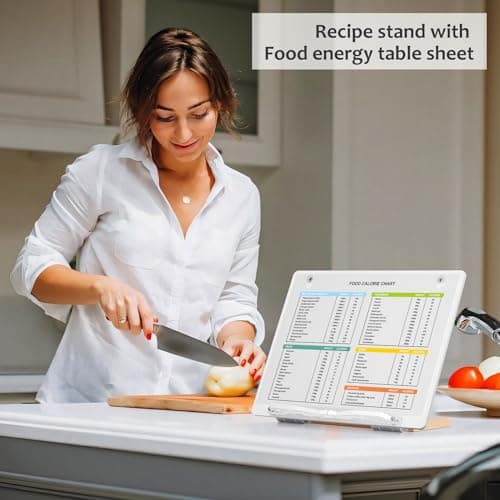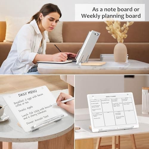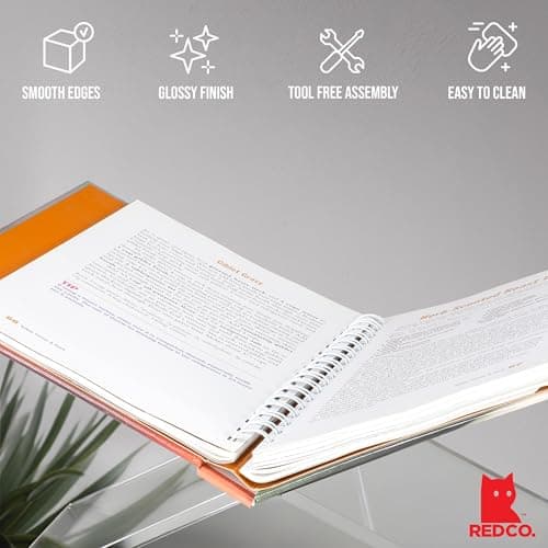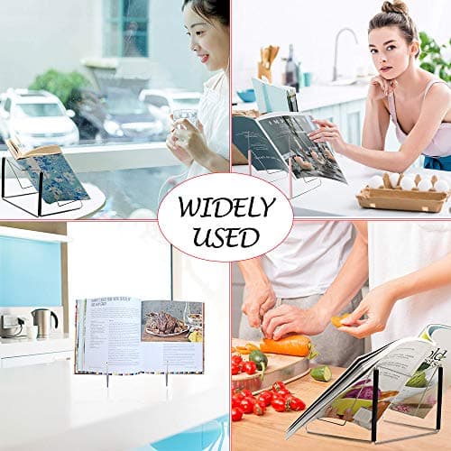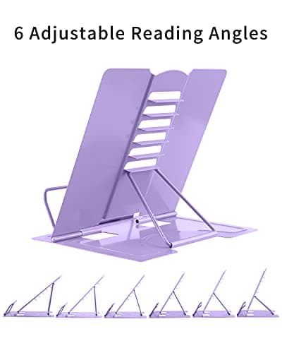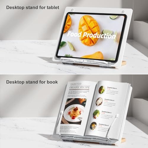 UPERGO Book Stand for Reading, Acrylic Book Holder for Desk with Weekly Planner, Angle Adjustable Recipe Book Stand for Kitchen