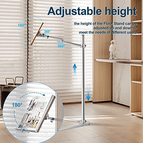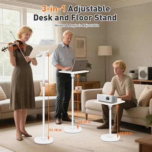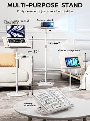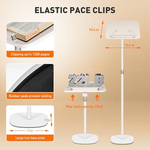 2 in 1 Adjustable Book Stand - Dual-Use Floor and Desktop Book Holder Stand, Height Adjustable 23.5-52 in, Elastic Page Clips for Music Sheet, Recipe, Tablet, Laptop-White