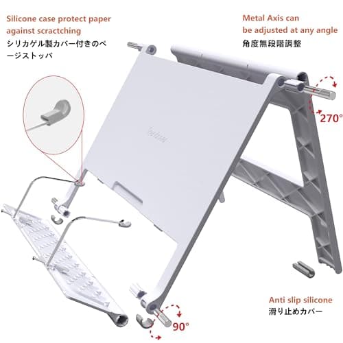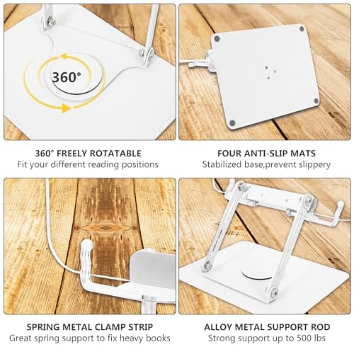SupeDesk Book Stand for Reading, Adjustable Book Holder with 360° Rotating Bases, Foldable Designs, and Elastic Clips, Multifunctional Display Stand for Recipe, Cookbooks, Magazines, Tablets, Laptops