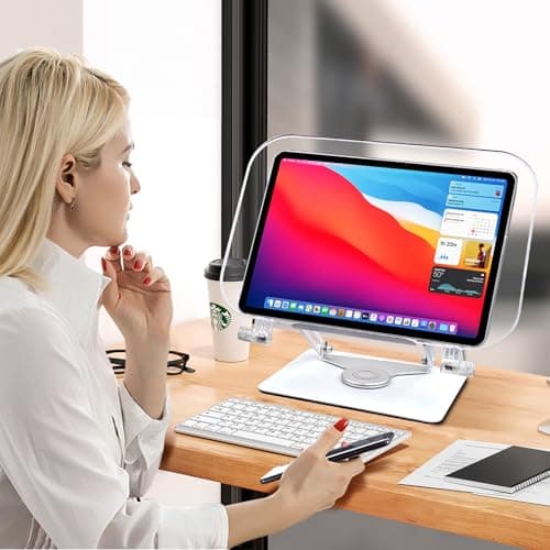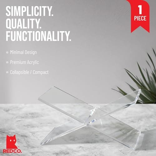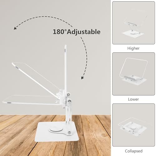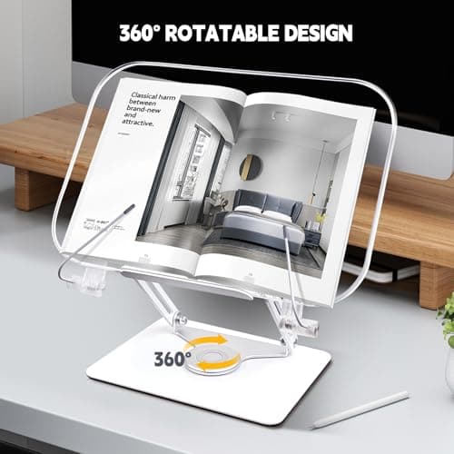 VECOFO Acrylic Adjustable Book Stand, 360° Swivel Base, Foldable Holder for Reading, Laptop, Tablet, PC, eReader