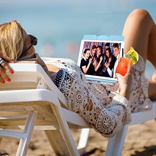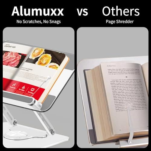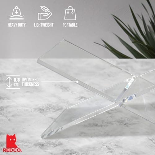 Alumuxx Adjustable Acrylic Book Stand for Reading in Bed, Book Holder Stand for Reading Hands Free, Cookbook Stand for Kitchen Counter, Reading Stand Book Holder for Couch, 360° Rotating & Page Clips