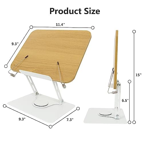 Viozon Book Stand for Reading,Book Holder, Height&Angle Adjustable, 360° Rotating Base, Foldable and Portable, Lightweight for Office, Kitchen, School Textbook, Recipe, Magazine,Kindle,Tablet DW