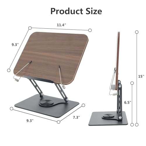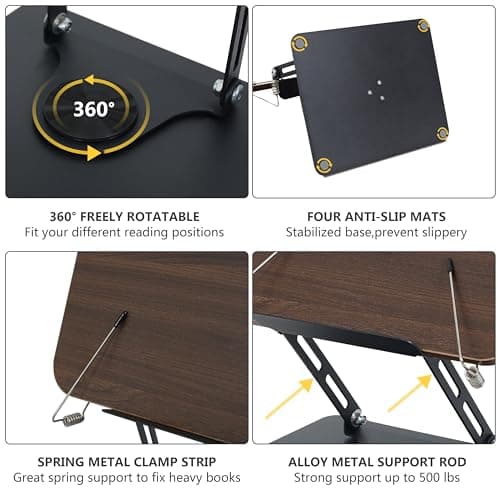MNKXL Book Stand for Reading,360°Rotating Base Book Holder for Reading Hands Free,Cookbook Stand,Wooden Panel Aluminium Base Stand for Cookbook,Laptop,Textbook