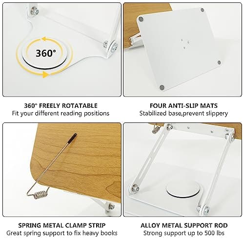 SupeDesk Book Stand for Reading, Adjustable Book Holder with 360° Rotating Bases, Foldable Designs, and Elastic Clips, Multifunctional Display Stand for Recipe, Cookbooks, Magazines, Tablets, Laptops