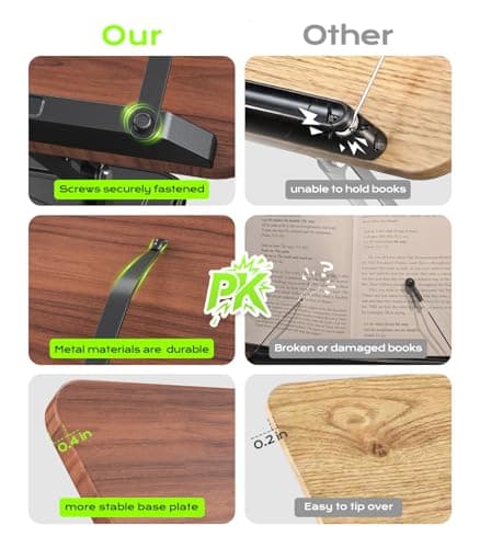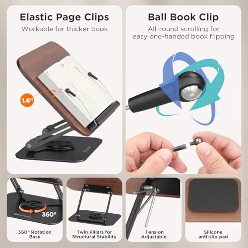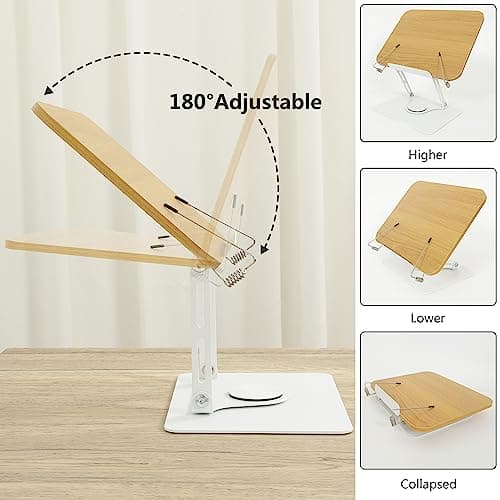 Book stands cover several different desk jobs. Some are built to keep a heavy textbook open through a study session, some are better for recipe cards or documents, and some make more sense when portability or fold-flat storage matters more than a planted base. In practice, the most useful differences are positioning range, page support, material, and how much desk space the stand claims once it is opened.