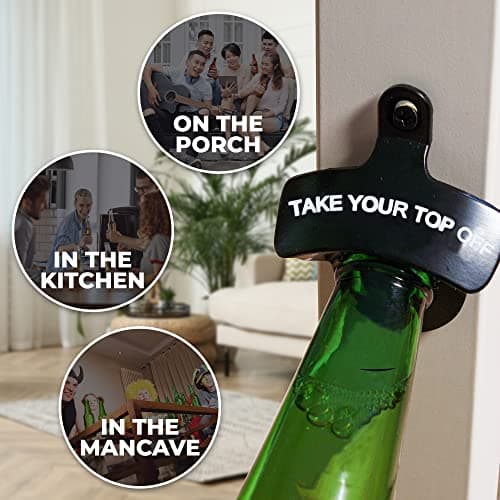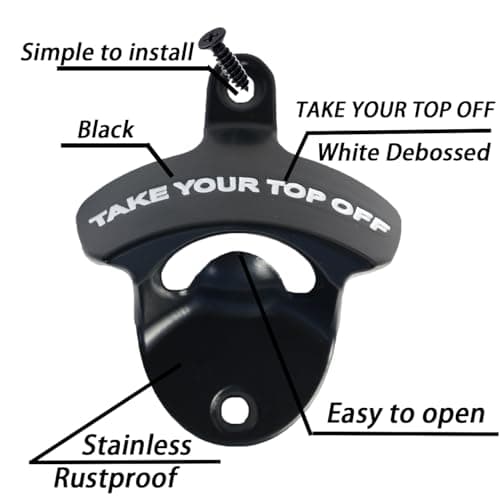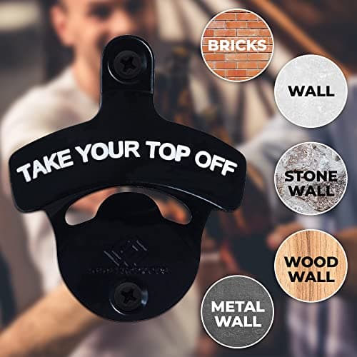 KiKS Products Bottle Opener Wall Mounted - Take Your Top Off opener - Cool &Funny Beer Opener - Perfect for Men, Dad, Boyfriend, Beer Lovers - Durable Black Wall Mounted Beer Accessories