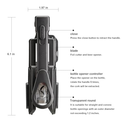 Soenglyun Wine Opener, Easy to Use Corkscrew Wine Opener with Foil Cutter, 6 inches, Lightweight and Small Travel Corkscrew for Wine Lovers, Black