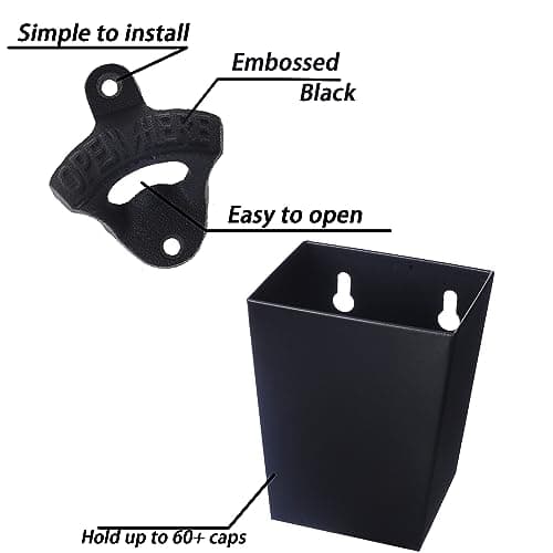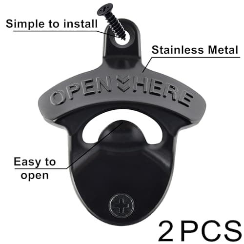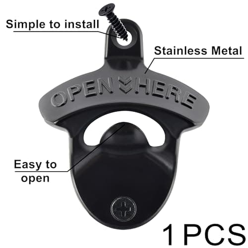 HAIICEN Black Wall Mounted Bottle Opener Stainless Metal Screw on Wall Beer Bottle Cap Opener OPEN HERE for Bar Table Cooler