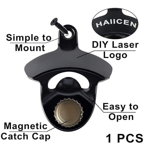 HAIICEN Magnetic Wall Mounted Bottle Opener Black, Rustproof Metal Screw on Beer Bottle Cap Opener Mountable for Beer Lovers Gifts