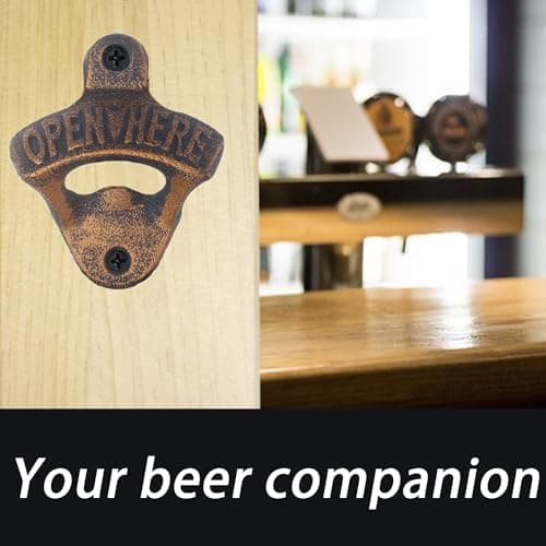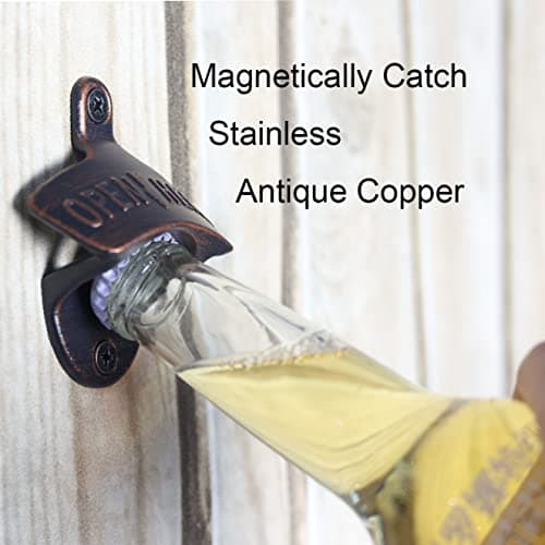HAIICEN Rustic Magnetic Beer Opener Wall Mounted Bottle Cap Opener Cheers, Antique Copper Screw in Bottle Opener with Magnets (2 Packs)