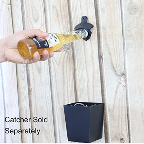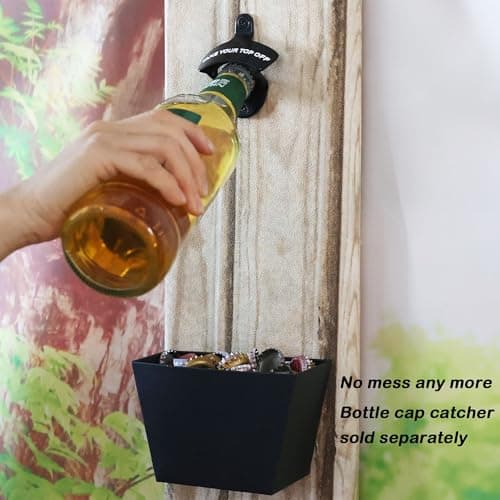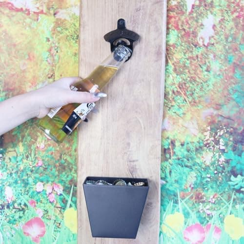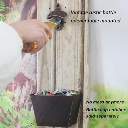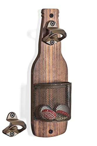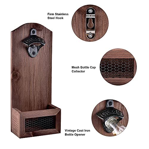 Siveit Wooden Bottle Opener with Cap Collector Catcher, Vintage Wood Wall Mounted Beer Bottle Opener, Ideal Gift for Men and Beer Lovers, Bar Decoration Opener
