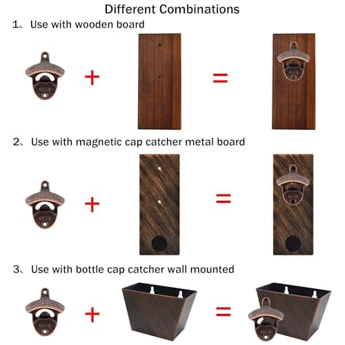 Jumiok Wall Mounted Bottle Opener with Magnets Built-in, Antique Copper Magnetic Soda Beer Cap Opener Wooden Caddy Mounted Stainless