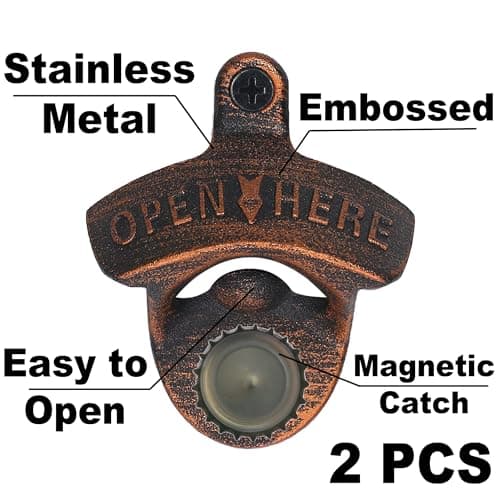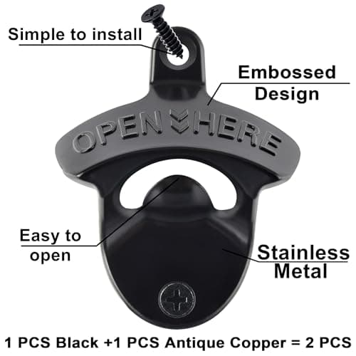 HAIICEN Old Fashion Bottle Opener Wall Mounted Stainless OPEN HERE Black Screw in Wall Beer Soda Bottle Cap Opener Rustic Copper for Table Cooler Post (2 PCS)
