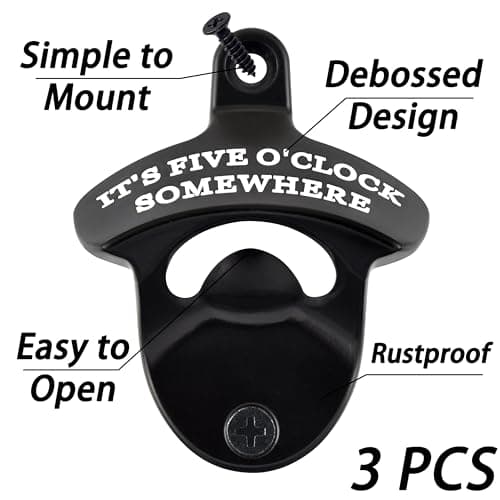 HAIICEN Stainless Wall Mounted Bottle Opener Black White, FIVE O'CLOCK SOMEWHERE Mountable Beer Bottle Opener for Table Men Women Gift (Pack of 3)