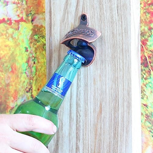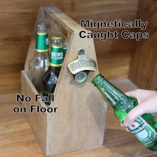 LUCYLANKER Wooden Beer Bottle Openers with Magnetic Catcher, Personalised Traceless Bottle Opener Wall Mounted, Home Bar Accessories for Kitchen, Garden, Outdoor, Ideal Beer Gifts for Men (Style 5)