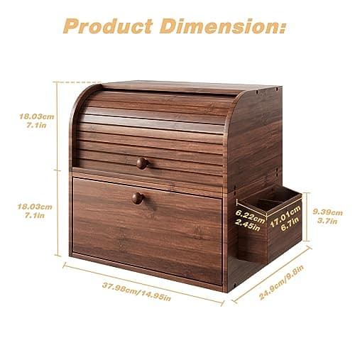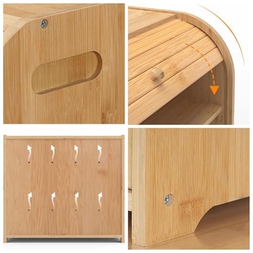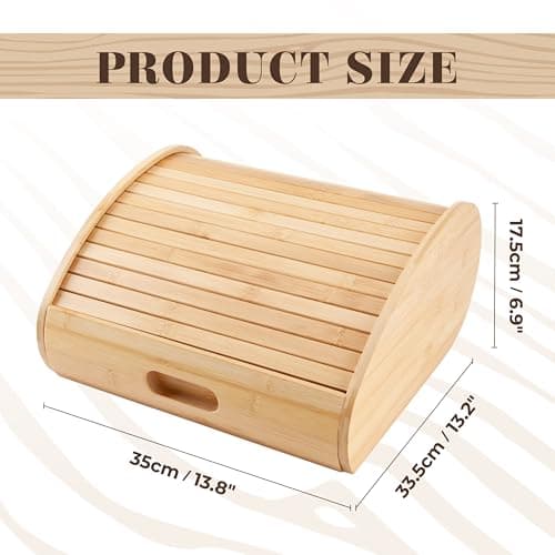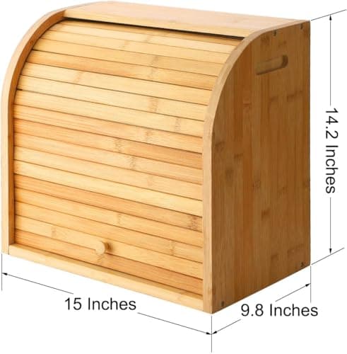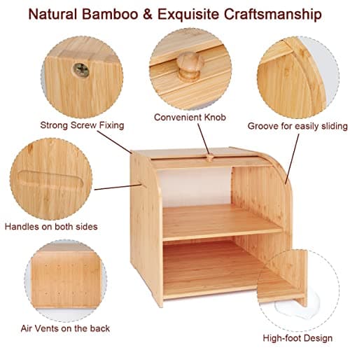 RoyalHouse Natural Bamboo Roll Top Bread Box Kitchen for Countertop Food Storage, Large, NO ASSEMBLY REQUIRED