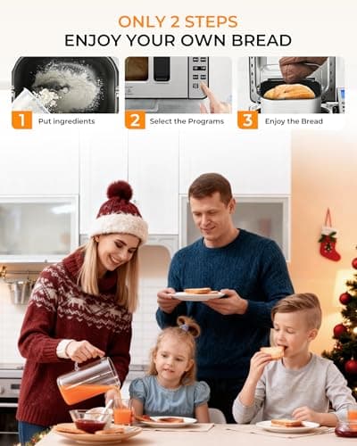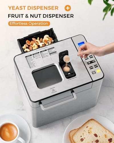 KBS Premium 2LB Convection Bread Maker Dual Heaters, 710W Stainless Steel 17-in-1 Bread Machine Healthy Ceramic Pan, Nut Dispenser,Touch Panel, 3 Loaf Sizes 3 Crust Colors, 15H Timer,Low Noise,Recipes