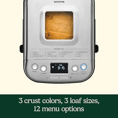 Amazon Basics Programmable Bread Maker, 2 Pound Non-Stick Automatic Bread Making Machine, 14 Settings for Breads, Doughs, Gluten-Free Options, ExpressBake, 3 Crust Colors, LCD Display, White