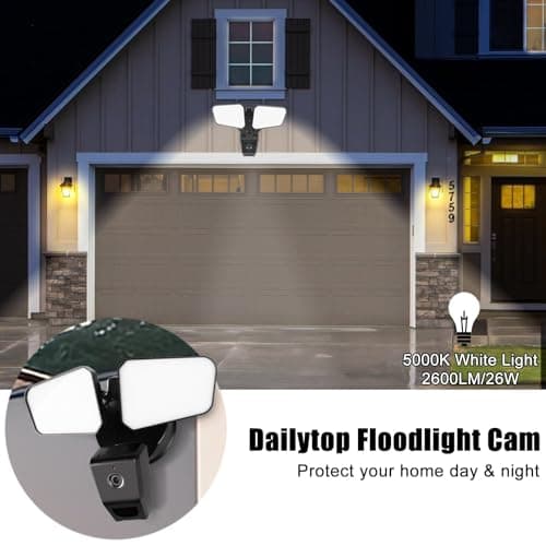 Roku Floodlight Camera for Home Security, Wired Outdoor Security Camera with 270° 1080p HD Night Vision, Dimmable Floodlights, Motion & Sound Detection, Remote Monitoring, 90-Day Subscription Included