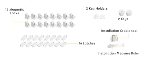 Vmaisi 16 Pack Child Safety Magnetic Cabinet Locks - Children Proof Cupboard Baby Locks Latches - Adhesive for Cabinets & Drawers and Screws Fixed for Protection