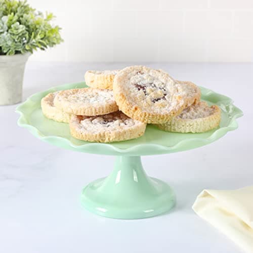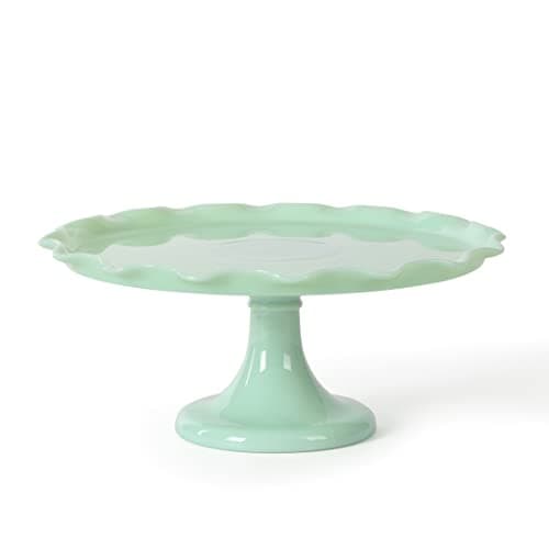 Martha Stewart Highbrook 11" Jadeite Glass Cake Stand – Handmade Vintage-Style Dessert Stand with Ruffle Trim, Decorative Pedestal Cake Plate for Display & Serving