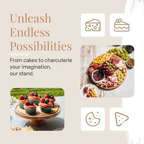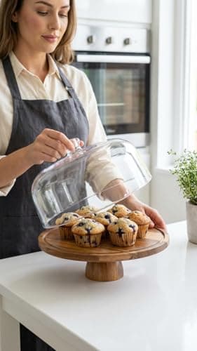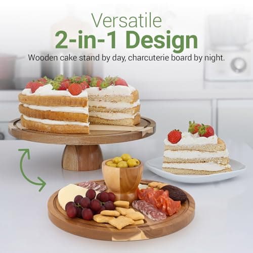Linda’s Essentials Acacia Wood Cake Stand with Lid (Acrylic) 12 Inch Round Cake Holder Stand with 5 Bonus Cake Sheets, 2-in-1 Wooden Cake Stand with Dome & Charcuterie Board for Cheese, Cake Plate