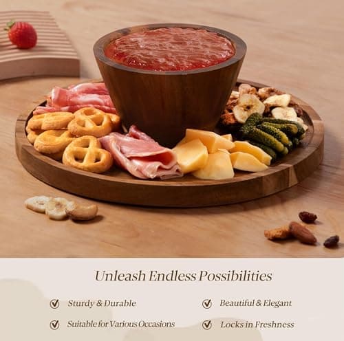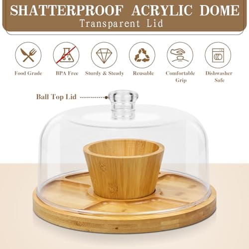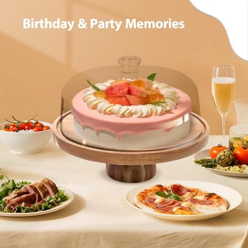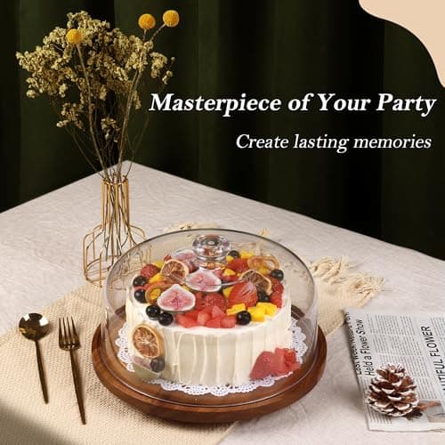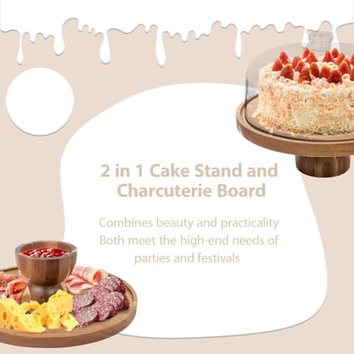Acacia Wood Cake Stand with Lid - Cake Stand with Dome,12in Round Cake Holder, 2-in-1 Dessert Table Display Set & Charcuterie Board for Cheese, Chips & Dips, Fruit Platter, Large Acrylic Cake Dome Cover