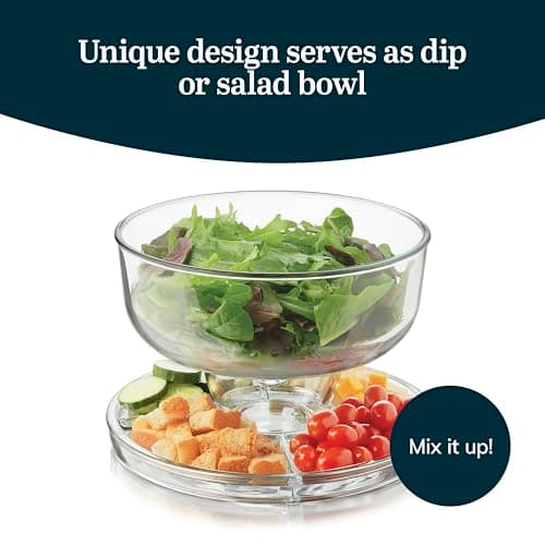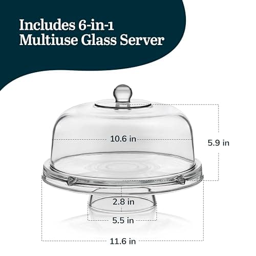 Libbey Selene 6-in-1 Domed Cake Stand, Unique Space Saving Glass Cake Stand with Dome, Multi-Purpose Dip Bowl To Serve Snacks and More