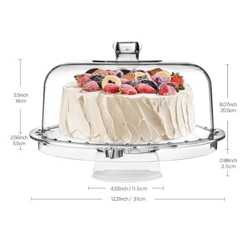 Homeries Acrylic Cake Stand with Lid, Cake Plate, (6 in 1) Multi-Functional Serving Platter, Large Cake Stand with Dome, Cake display stand with lid & Cake Dome - Use as Cake Holder, Cake Cover