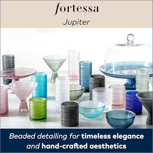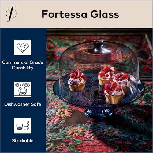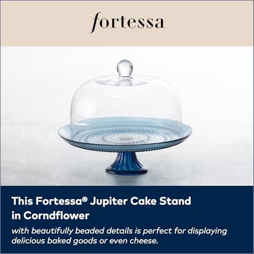 FORTESSA Jupiter Beaded Hobnail Glass Vintage Themed Glass Serveware, Large 13 Inch Vintage Cake Stand, Dishwasher-Safe, Cornflower Blue