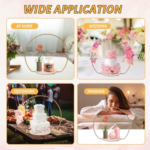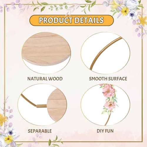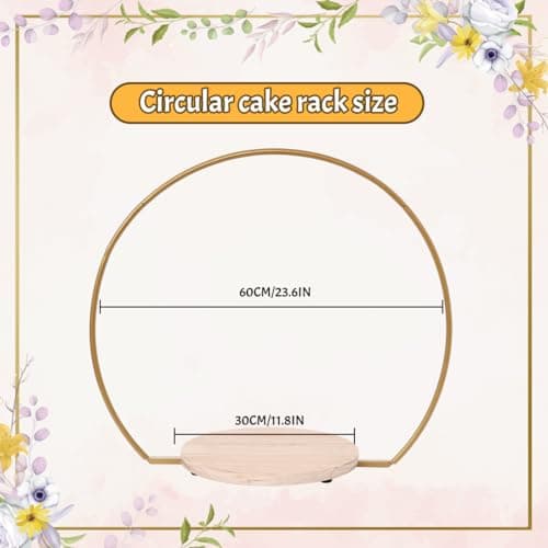 20 Inch Gold Cake Stand with Wooden Stand,Metal Arch Wedding Cake Stand,Floral Hoop Centerpiece and Cake Display Stand for Wedding Birthday Party Events Reception Decorations Supplies