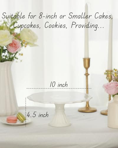 Omifun 10 Inch Cake Stand, Relief Round Dessert Cake Stand, Ceramic Cupcake Stand for Birthday, Wedding, Baby Shower, Tea Party and Other Celebrations(White)